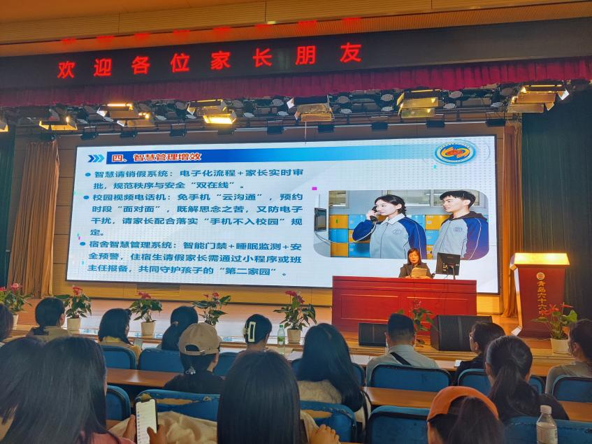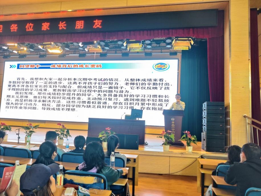 在教学领域,学校守牢阵地,锐意进取,持续加大课堂教学改革力度。本学期,学校在前期“每师一课”“每周一评”的基础上,推出“每干部一课”活动。目前学校获批6个市级学科基地,涵盖语文、数学、英语、政治、生物、信息技术等学科。本学期立项4项省市课题,其中1项是青岛市教育学会重大招标课题。学校以“效率设计”为核心重构教学管理范式,学生在竞赛方面也取得了优异的成绩。高三学子在全市一模、二模考试中成绩斐然,彰显了学校教学管理的显著成效。 德育工作方面,学校始终秉持 “立德树人” 的根本任务,学校将思政教育贯穿教育教学全过程,从课堂主阵地、实践育人、加强常规管理等方面,筑牢学生思想根基。学校以“十个一”项目为抓手,构建多元成长平台。以体育固本、艺术润心、健康守护,实施五育融合育人。本学期学校配备了智慧请销假系统、校园视频电话机、宿舍智慧管理系统,以科技赋能管理,守护学生成长。 后勤保障上,学校全力打造安全、舒适、温馨的校园环境。食堂严格把控食品安全关,精心搭配营养膳食,为学生提供美味可口的饭菜,为学生的学习与生活提供坚实保障。沃校长的发言,让家长们深切感受到学校在教育教学各方面的用心与努力,赢得了家长们的阵阵掌声。 成长路径分享 严管厚爱,静待花开 随后,学管处主任李小明围绕“纪律教育与成长路径”与家长进行了深入交流。他强调,良好的纪律意识是学生健康成长的基础,能够帮助学生养成自律、专注的学习习惯。他向家长们详细介绍了学校在纪律管理方面的具体措施与取得的显著成效,同时也希望家长们在积极配合,共同督促学生遵守纪律,培养规则意识。学校也将通过严格管理和正向引导,帮助学生养成良好的学习习惯和行为规范。 在学生成长路径规划上,李小明结合学生的身心发展特点与学习现状,为家长们提供了极具针对性的建议。他鼓励家长关注学生的兴趣爱好与特长,引导学生树立明确的目标,并制定合理的学习计划。此外,还提醒家长要注重学生的心理健康,加强与孩子的沟通交流,给予他们充分的关爱与支持,助力学生在高中阶段茁壮成长。 班级家长会 精准沟通,共话成长 最后,各班分别召开家庭教育指导课与家长会。 高一年级的家庭教育指导课,以《非暴力沟通:重建亲子对话桥梁》为主题,通过案例分析、情景模拟等方式,引导家长认识到沟通中“观察、感受、需要、请求”的四要素法则,教会家长如何用尊重与理解替代指责与命令,让亲子对话成为情感联结的纽带而非矛盾爆发的导火索。不少家长现场分享了日常沟通中的困惑,与班主任及其他家长共同探讨解决方案,在思维的碰撞中收获了更智慧的沟通技巧。 高二年级的家庭教育指导课,以《学做让别人家的孩子羡慕的家长》为主题,通过展示优秀家庭教育案例、解析青春期孩子的心理需求,聚焦家长的自我成长,“最好的教育是言传身教”,当家长专注于提升自身修养、保持学习热情、践行积极价值观时,孩子自会在潜移默化中汲取成长的力量。课堂上,家长们围绕“如何避免过度攀比”“怎样平衡陪伴与放手”等话题展开热烈讨论,纷纷表示将从自身做起,用行动为孩子树立榜样,让“别人家的家长”成为孩子眼中的光。 两场主题鲜明的家庭教育指导课,不仅为家长提供了可操作的教育方法,更传递了“教育是家长与孩子共同成长”的理念,让家长会从“单向反馈”升华为“双向赋能”,为家校协同育人注入了新的活力。 家长会上,各位班主任通过展示学生的学习成果、日常表现等资料,向家长们全面汇报了半学期以来班级的整体情况,分析了学生在学习、生活中存在的问题,并提出了切实可行的解决方案,力争实现家校共育,助力每个学生实现心中的梦想。 各科任课老师则结合学科特点,分享了学习方法与学习建议,指导家长如何在家中帮助学生提高学习效率。同时,老师们还与家长进行了一对一的交流,耐心解答家长们的疑问,倾听家长的意见与建议,真正实现了家校“零距离”沟通,现场氛围热烈而融洽。 此次家长会的成功召开,促进了家校协作的桥梁纽带作用,进一步拉近了学校与家长的距离,增强了家校之间的信任与合作。教育是一场温暖的修行,是家庭与学校的双向奔赴。未来,青岛六十六中将继续与家长携手同行,凝心聚力,为学生的成长与发展保驾护航,共同书写更加美好的教育篇章!